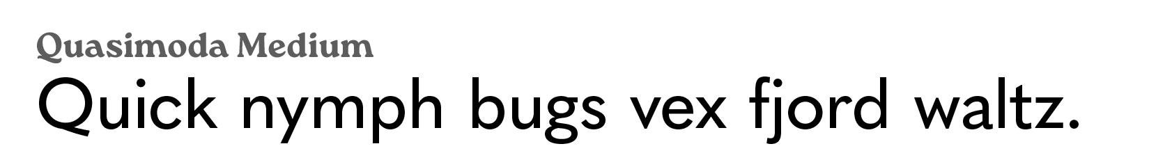 Quasimoda is legible and versatile with a lot of variants to choose from. Some of the letter shapes remind me of Futura. There’s a geometric quality that adds character without hurting readability.